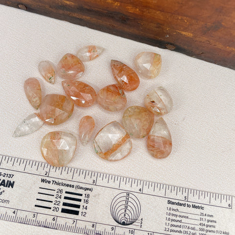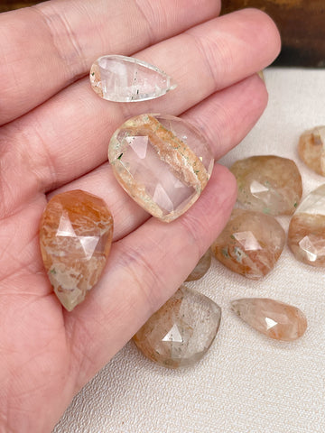 A mix of Brazilian quartz beads in various sizes. The color and quality is hard to pick up on camera but these have sparkly quartz tones with lighter peach than what shows in the photos.