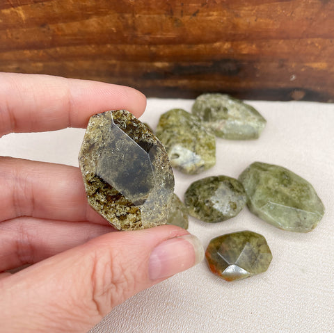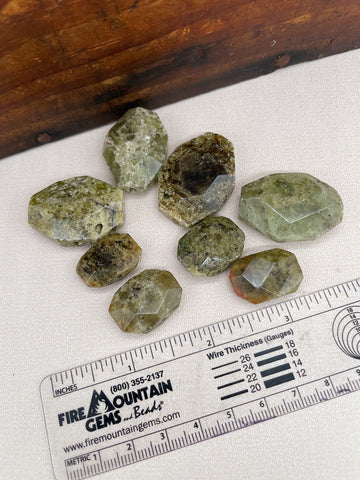 A large mix of green garnet beads in various sizes.