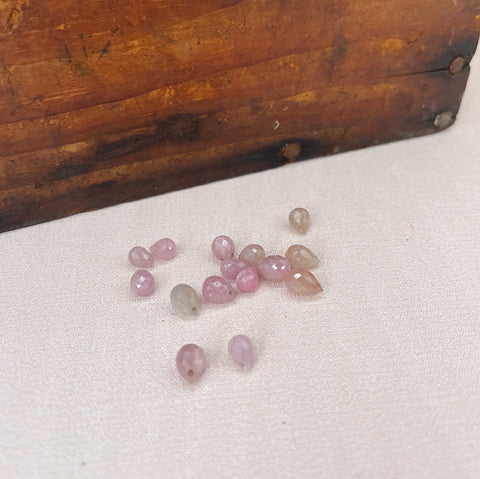 A mix of teardrop sapphires in mixed colors. 15 beads total, originally $1 per bead wholesale.