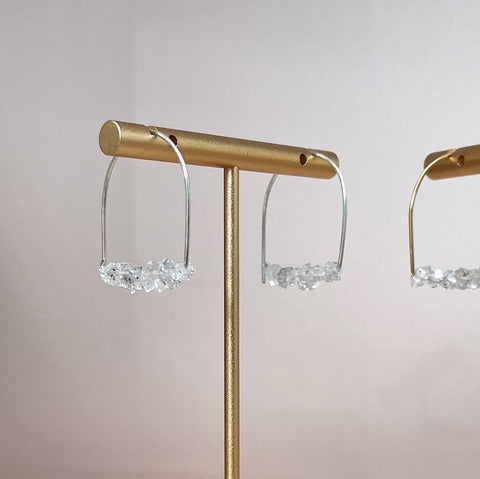 Modern minimalist earrings that go with everything. Just choose your metal (silver or 14k gold fill) and sparking Herkimer diamond stones.