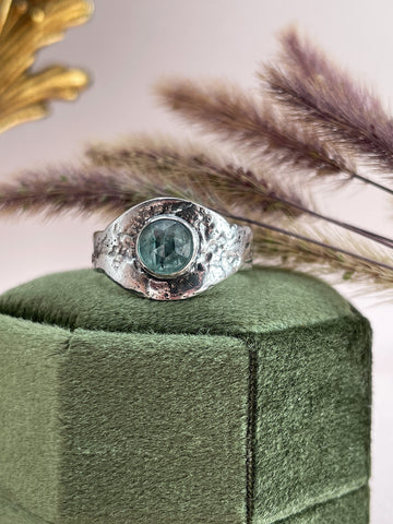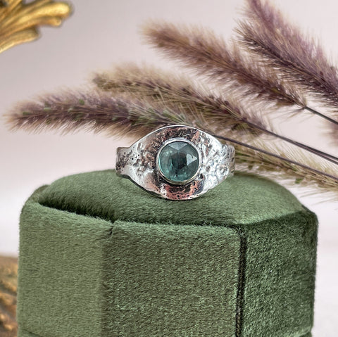 Beautiful viridian colored kyanite set in textured sterling. The evil eye is a long standing symbol of protection against negativity and misfortune.
