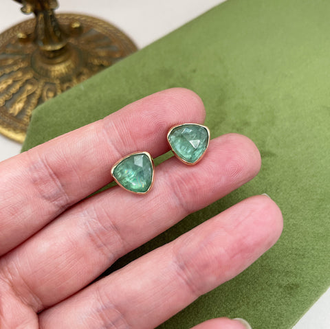 Beautiful viridian colored faceted kyanite set in 14k gold (solid) on sterling.