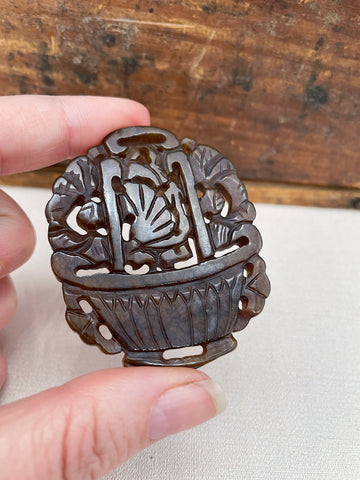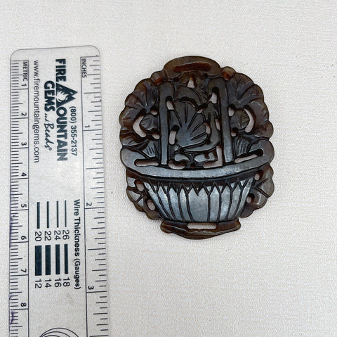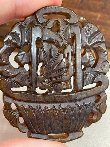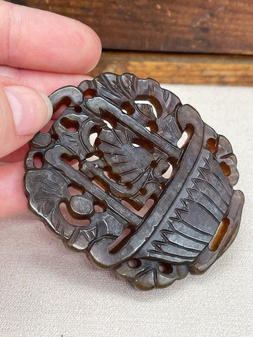 large carved pendant in agate, carving is double sided