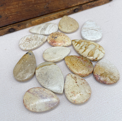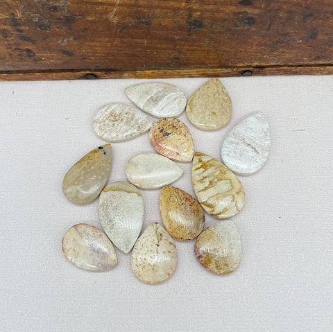 unique fossilized coral beads, originally $1.50 each. Stone color is a bit lighter and softer than pictured, less yellow. Lighting is making the stones look darker and deeper in color than they are.