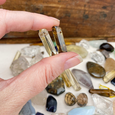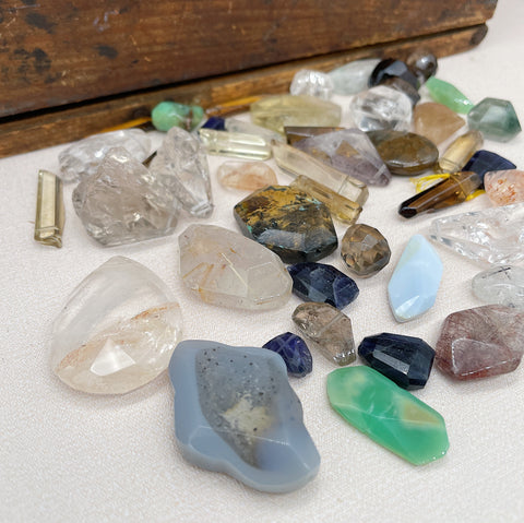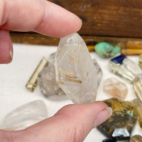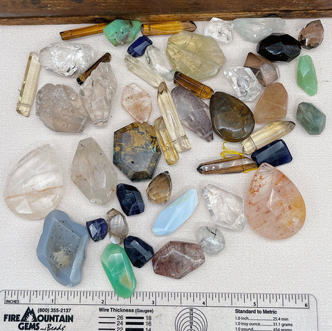There is quartz, true citrine spears, common opal, chrysoprase, rutilated quartz, phantom quartz, smoky quartz, agate with druzy, Brazilian quartz, golden rutile quartz and more.