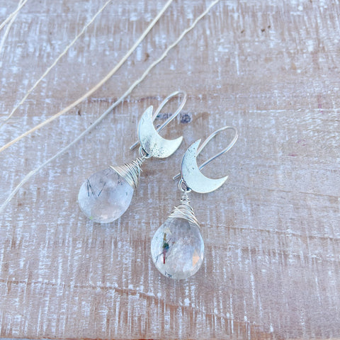 Rutilated Quartz Crescent Dangles